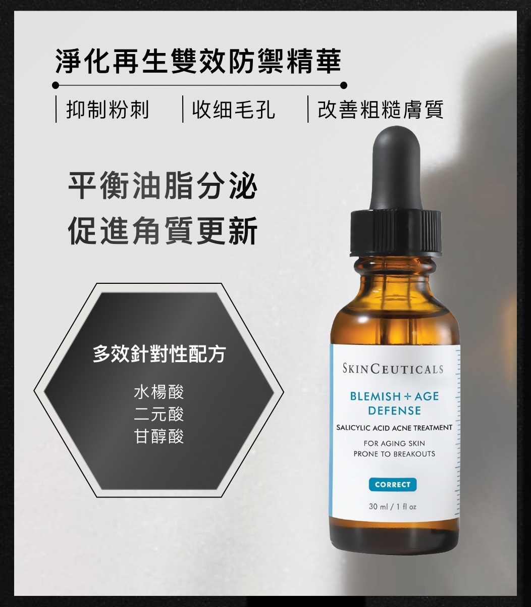 嶄新配方結合二元酸、水楊酸、LHA及甘醇酸,能預防暗瘡形成,減少過量油脂分泌,同時改善幼紋、皺紋及粗糙膚質等提早老化的跡象。