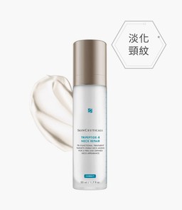 SkinCeuticals 三肽緊緻淡紋頸霜的主要成分針對補充肩頸的膠原蛋白,彈性蛋白及醣胺聚醣,對抗肩頸老化根源問題。成分包含0.2%維他命A,可刺激膠原蛋白增生,預防皺紋,撫平現有細紋和皺紋;2.5%三肽濃縮精華,增加表皮和真皮層透明質酸,改善頸部肌膚輪廓;5%海罌粟鹼複合物,減少脂肪細胞分化。
